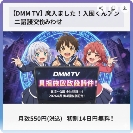 「神秘」に関連するアニメ作品はDMM TVで見られる?2026年2月9日時点の配信状況を確認しました。月額550円・初回14日間無料のDMM TVで視聴できる「神秘」関連作品と、注目の新作情報をまとめています。