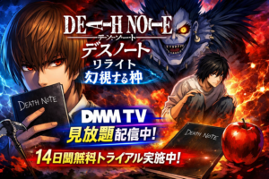 また、DMM TVではデスノート関連作品が充実しており、TVアニメ「DEATH NOTE(デスノート)全37話」や前作「リライト 幻視する神」も見放題で配信されています。シリーズを一気に振り返りたい方にとって、DMM TVは最適な環境と言えるでしょう。
