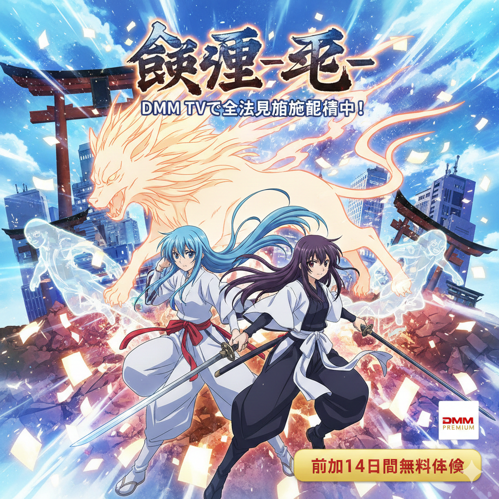 2026年2月28日時点で、「喰霊-零-(がれいぜろ)」はDMM TVにて全12話が見放題配信されています。DMMプレミアム会員(月額550円・税込)であれば追加料金なしで視聴可能です。初回14日間の無料トライアルを利用すれば、全話を0円で楽しむこともできます。全12話・約5時間で完走できるため、無料期間内での一気見も十分に現実的です。