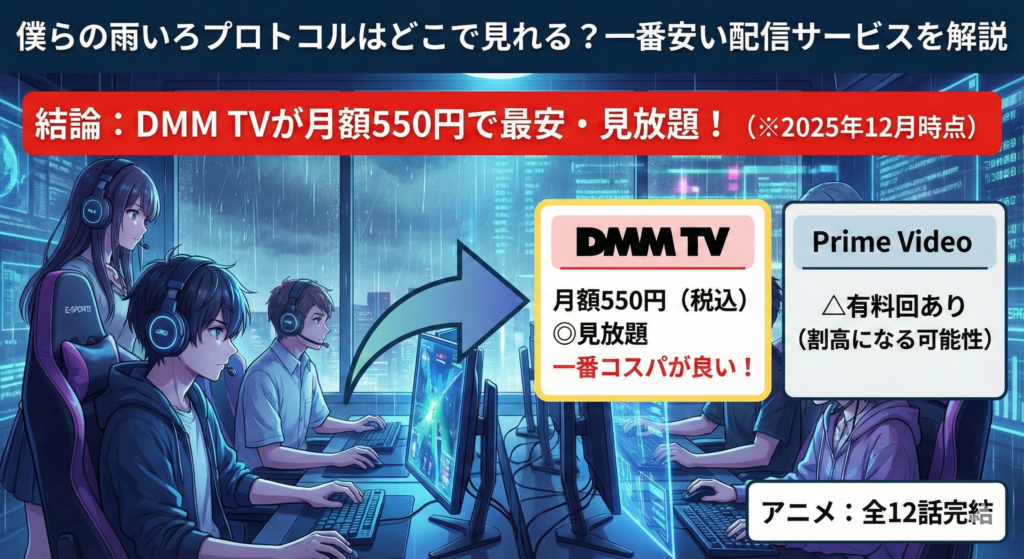 アニメ「僕らの雨いろプロトコル」はどこで見れる?2025年12月時点で最安に視聴できる配信サービスを解説。配信状況一覧や全話まとめ見できるか、話数情報も分かります。 -