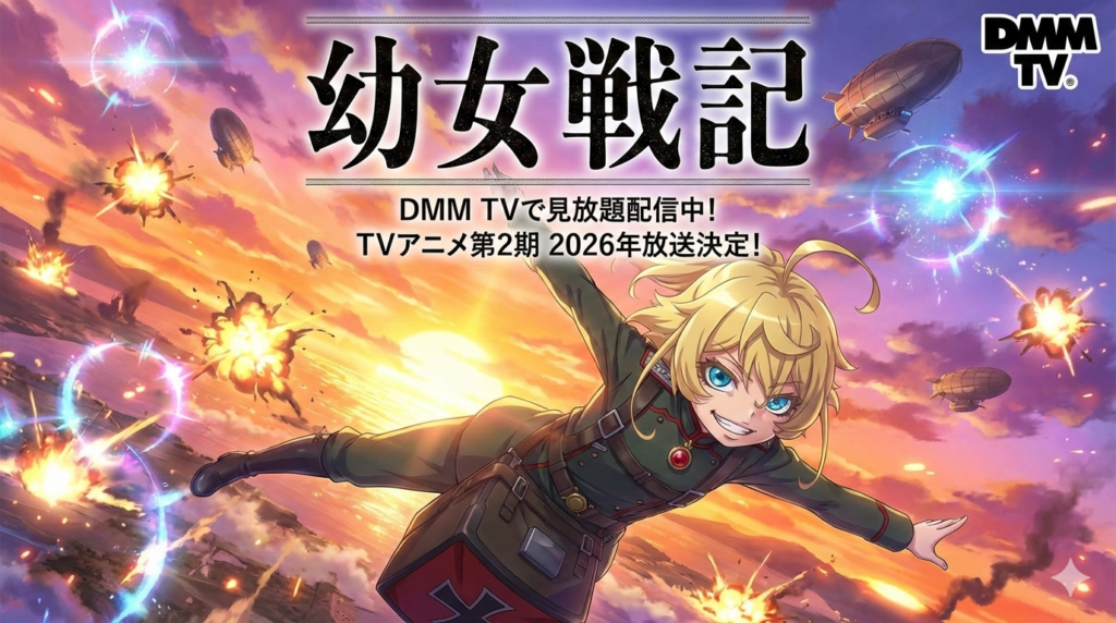 「幼女戦記」はDMM TVでTVアニメ第1期全12話・閑話・劇場版がすべて見放題。月額550円・初回14日間無料で視聴可能。2026年放送決定の第2期「幼女戦記Ⅱ」最新情報や見る順番、口コミ・評判もまとめて紹介します。 -
