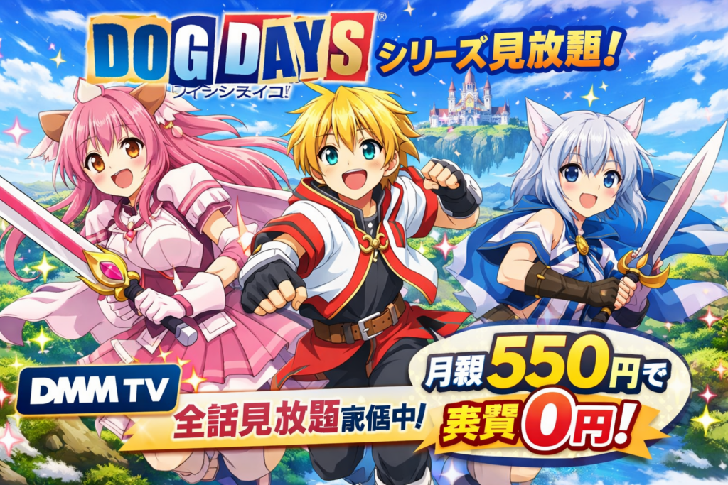 アニメDOG DAYS全3期・全38話はDMM TVで見放題配信中(2026年2月28日確認)。月額550円(税込)で全話視聴可能、初回14日間無料体験あり。見る順番・口コミ・作品情報を完全ガイドします。 -
