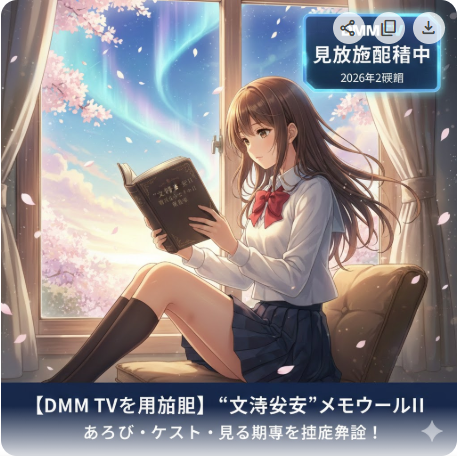 「"文学少女"メモワールⅢ 恋する乙女の狂想曲」の配信状況を2026年2月9日に確認しました。DMM TVでの視聴方法・月額料金・無料トライアル情報に加え、あらすじや見どころ、シリーズ視聴順もまとめています。 -
