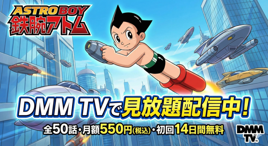『ASTROBOY 鉄腕アトム』はDMM TVで見放題(全50話)。月額550円・初回14日間無料で、心を持つロボットを視聴できます。【2026-01-18時点】